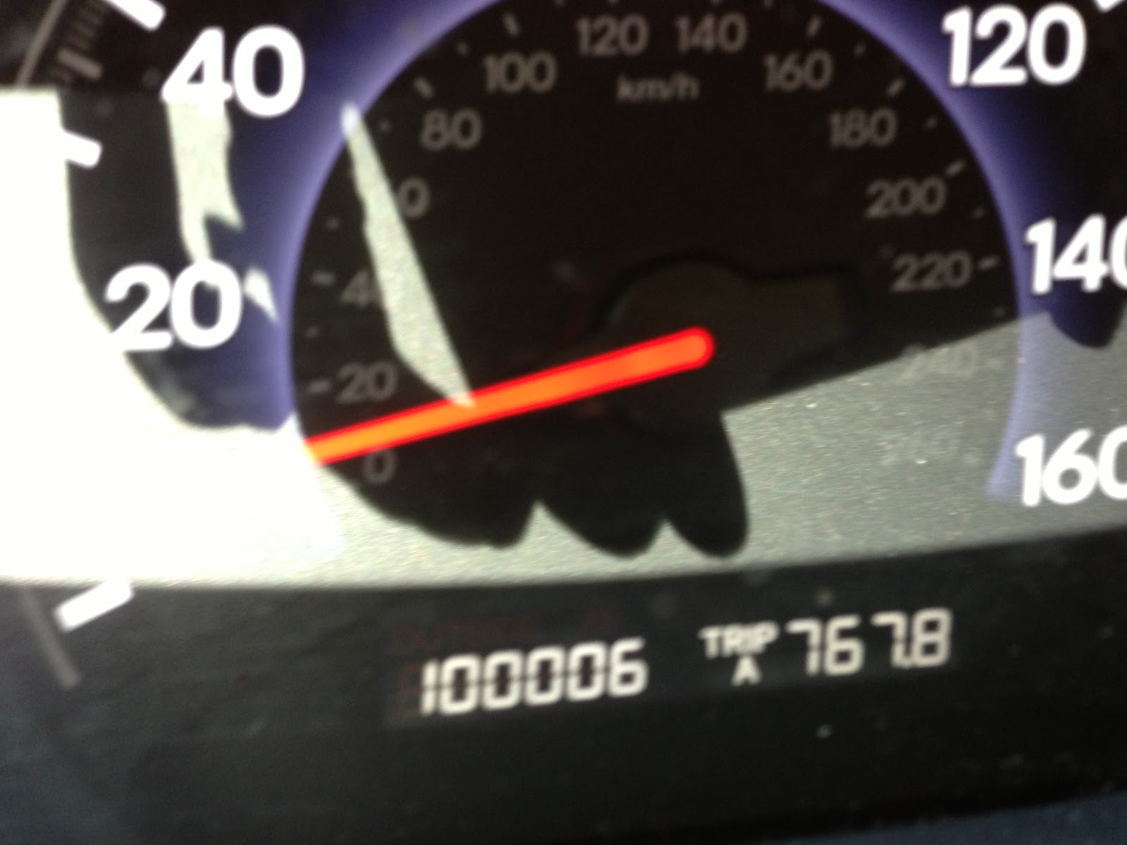 Without whining about how we worked ourselves to exhaustion for two days, I’ll tell you this story: I’ve been watching my speedometer for weeks now, waiting for it to turn to 100,000. I kept wondering where it would happen.