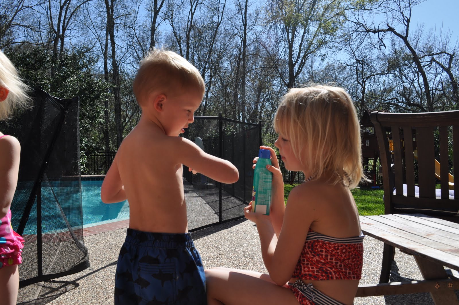 Saturday M worked in the yard while the kids and I did what we do best…them in the pool and me watching them.