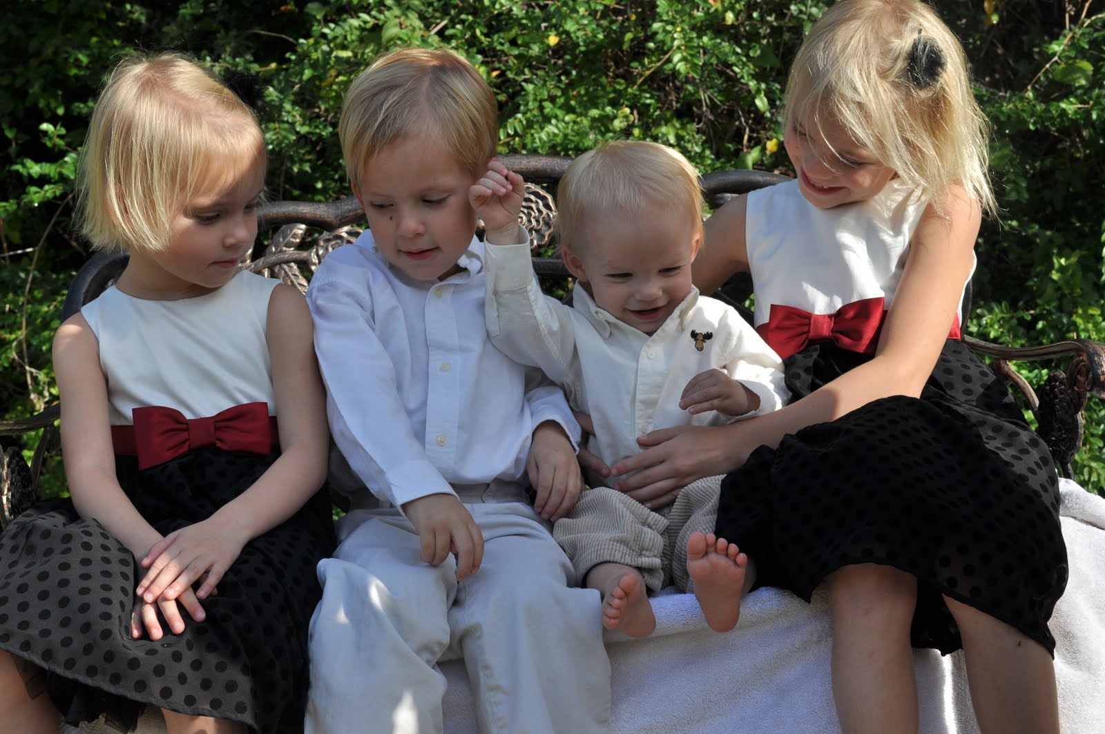 One day we’ll probably look at this year’s Christmas picture and laugh at how we all look a bit silly. Years from now, when the only difficulty is making sure everyone has his/her eyes open, we’ll forget that getting one decent picture meant an all-morning ordeal. That there’s little Christmas-card worthy of four kids (and two parents) who can’t seem to all look at the camera at the same time. Or leave their shoes alone (Catie.)