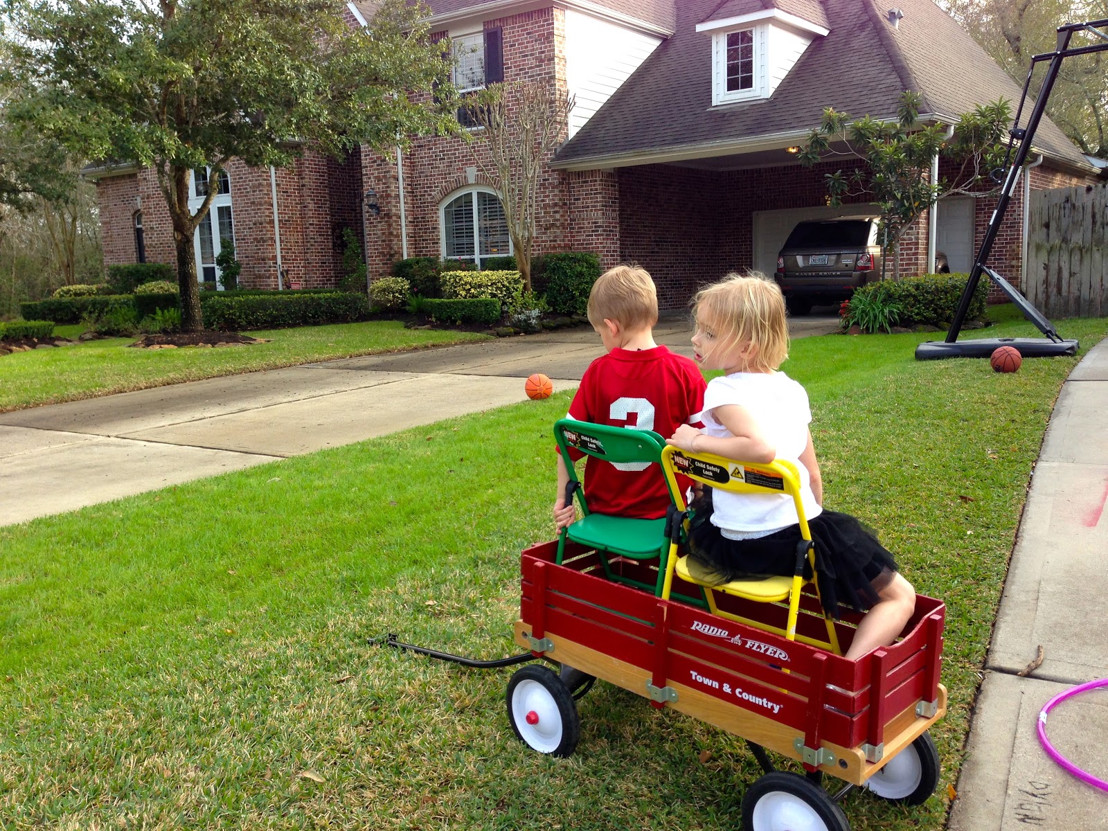 Some red carpet events require transportatio more festive than just a PowerWheels Jeep. That’s where Catie steps in with her Wagon Contraption of Death–I mean, chariot. Like Victoria and David Beckham, this couple appreciates the posh-er parts of life (yes, pun intended.). They also appreciate each other’s success–unless that success undermines their own. Just like a real celebrity couple, the fiercest fights brew when their better half’s career or life seems to be going better. Ever since Elisabeth scooted across the living room before Sam, the twins have eyed each other’s milestones to make sure they’re staying even.