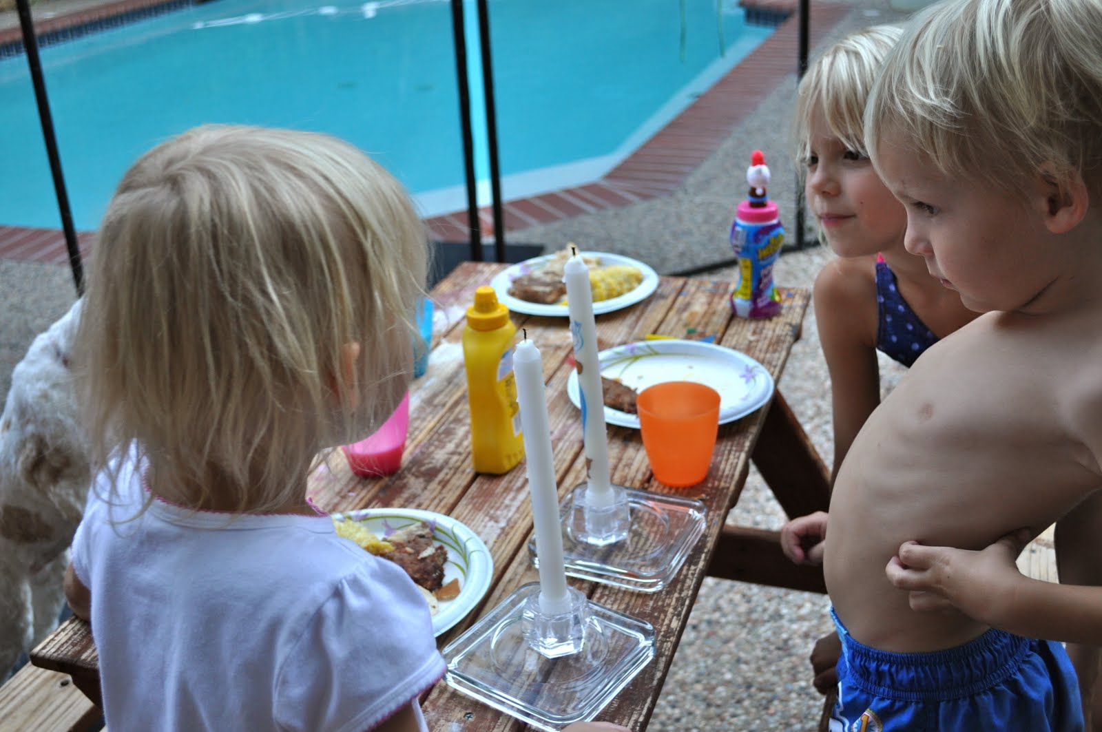 We remembered to celebrate Sam and Elisabeth’s Baptism Birthday when the UPS truck delivered a new Bible from Gigi and Papa. We embraced the cooler weather and celebratory mood with Grandma in town by eating dinner on the patio.