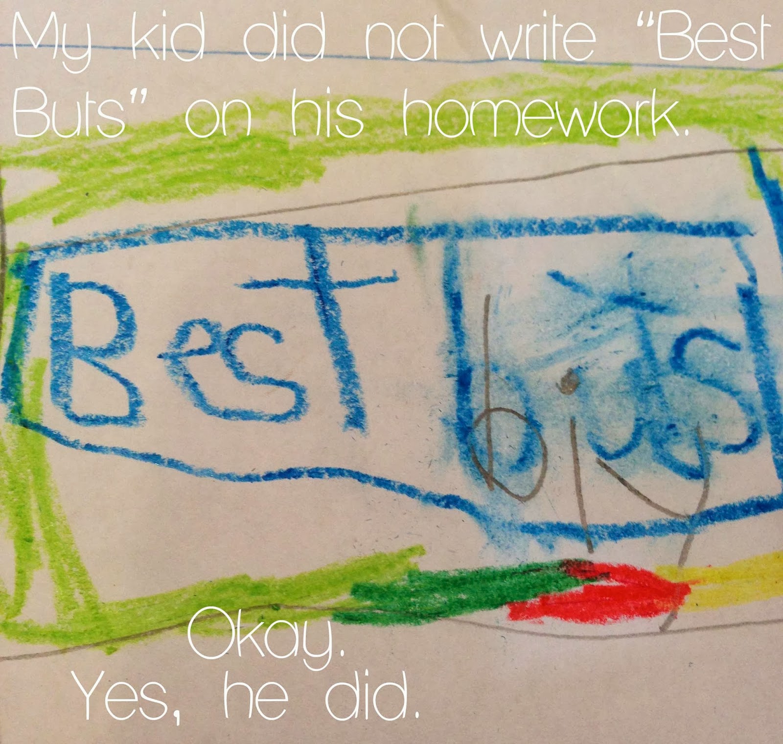 6:41 PM: I look more closely at the picture. “Is the name of this store Best Buts?” I ask (totally not thinking the name of the store is Best Buts. My kids can’t spell. On a good day, they spell their names right. But with a last name like ours, that’s not even that frequent.)