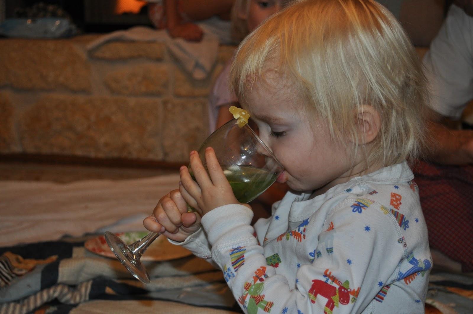 ‘Twas the Night Before Christmas, and the children were NOT snug in their beds, but celebrating with a little Sprite spiked with gum balls (hence the blue drink Nate is guzzling, which is not, in fact, Windex).