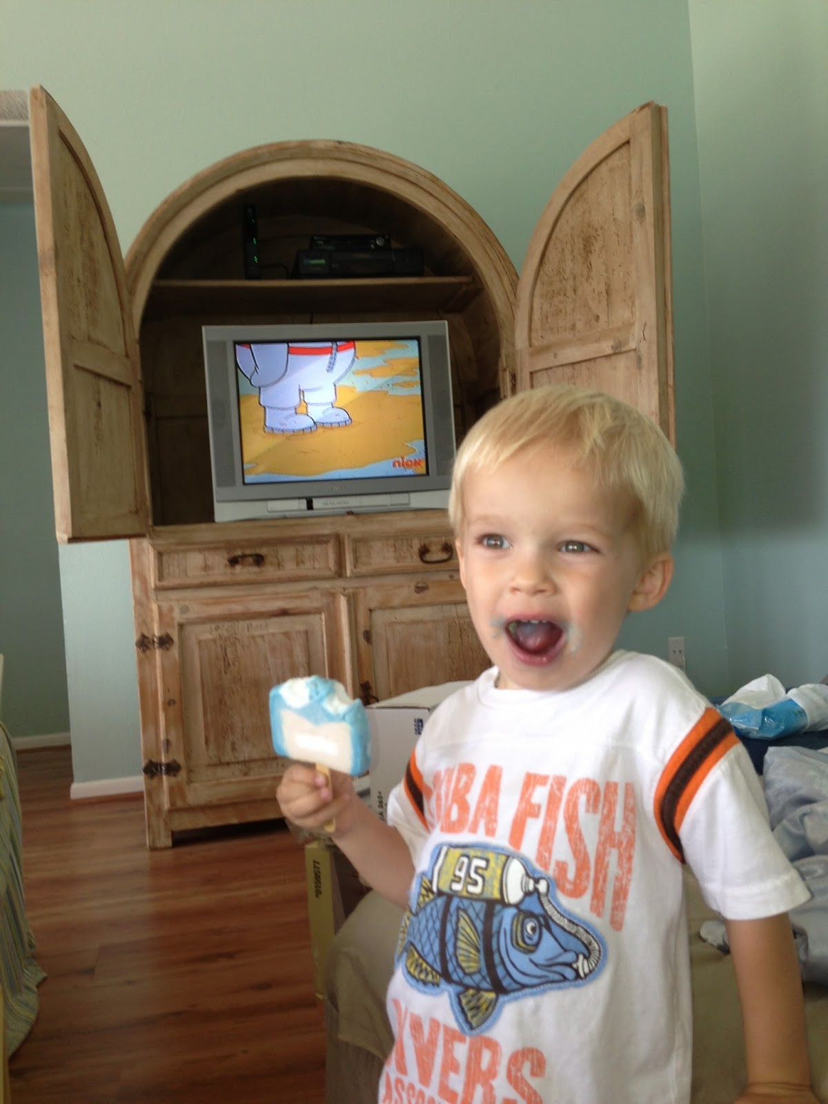 Nate: You bet I can. This is me BEFORE school got out for the summer. Here I am, EATING ICE CREAM and WATCHING SPONGEBOB. Man. I so did not even realize what I had back then. Just me and Mommy living it up as best friends. Dude. I wish I could go back.