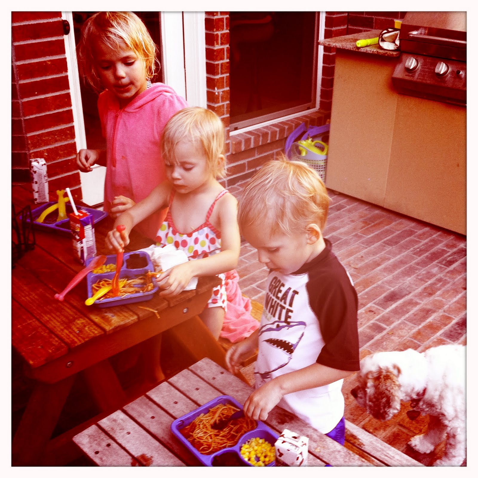 Soccer games, ballet recitals, church, and hours and hours in the pool. Too many frozen entrees (pictured above). Lots of laughter and fun.