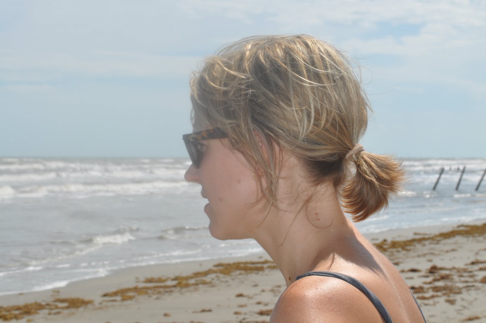 In better news, the other things I WAS waiting for have all happened: my next book will be in bookstores on June 1. My hair has finally grown enough that I look less like an ’80s rocker and more like a (late) thirty something. In this picture, you can still see the Joan Jett-ishness of it poking out of the ponytail. But I thought that this shot nicely completes our beach setting pictures for this week.