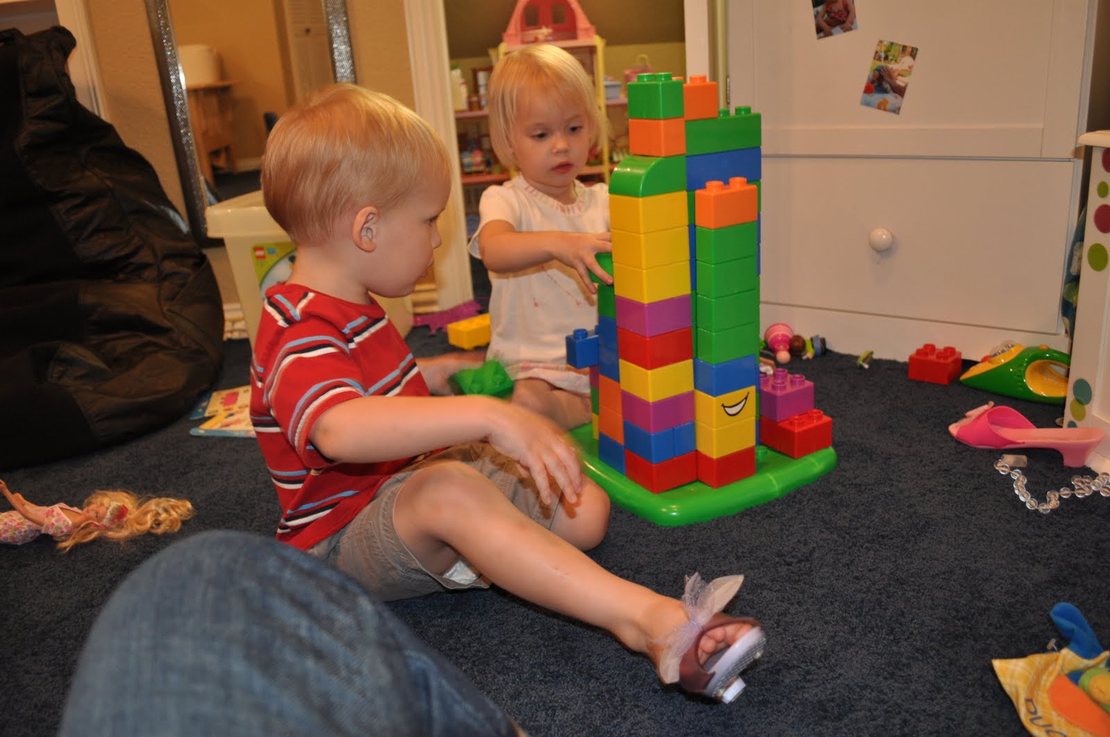 Catie went through this House stage too, but I can’t remember it. And so, for Sam and Ellie, I have this picture. If I don’t remember one minute of these years, I can always look back on this photograph and think…”why in the HECK is Sam wearing Princess heels?!”