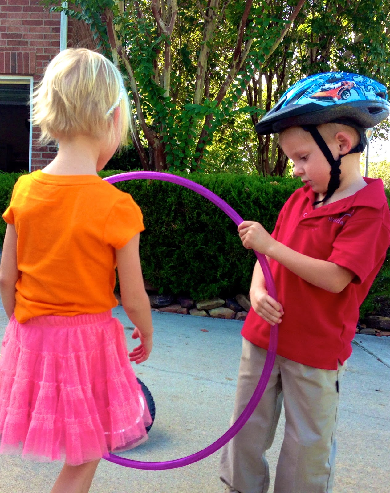 So, you’ll let him play with the hula hoop, but he’ll have even more energy, so he’ll beg you to ride his bike to the park. And when your older child gets home and hears the begging, she’ll start in too.