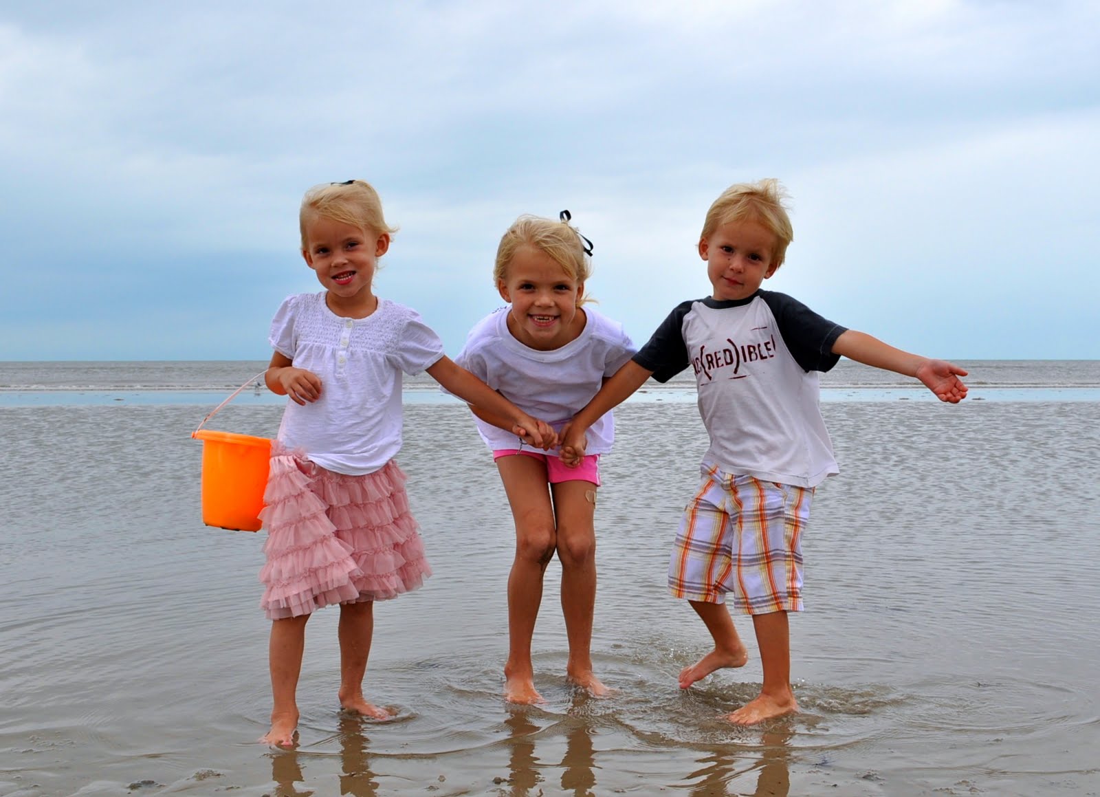 Elisabeth: a silly twin by her side, a big sister to invent adventures, a little brother to watch her “shows” on the sand