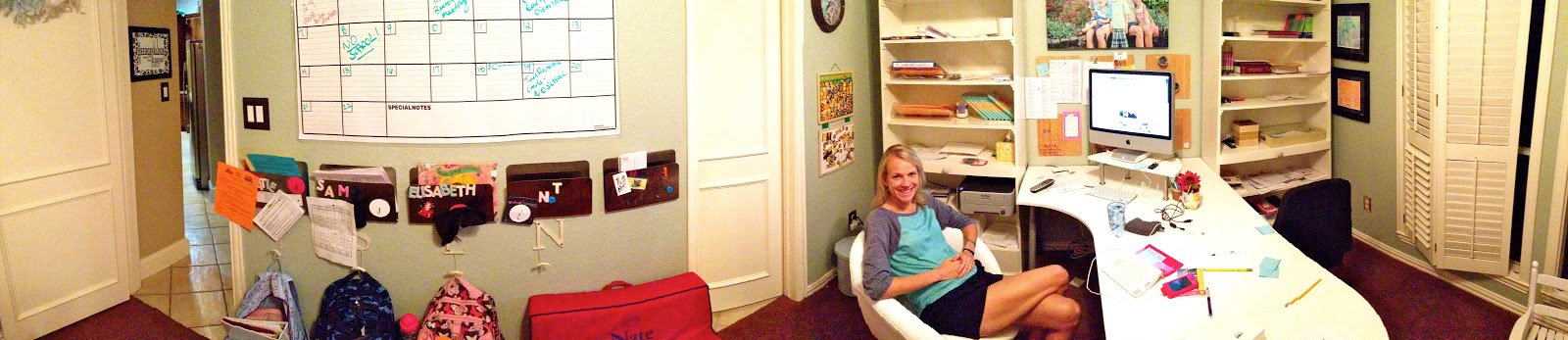 Pretty soon we had a Mommy Cave, complete with hooks and file folder systems, wall calendars, and a big communal computer.