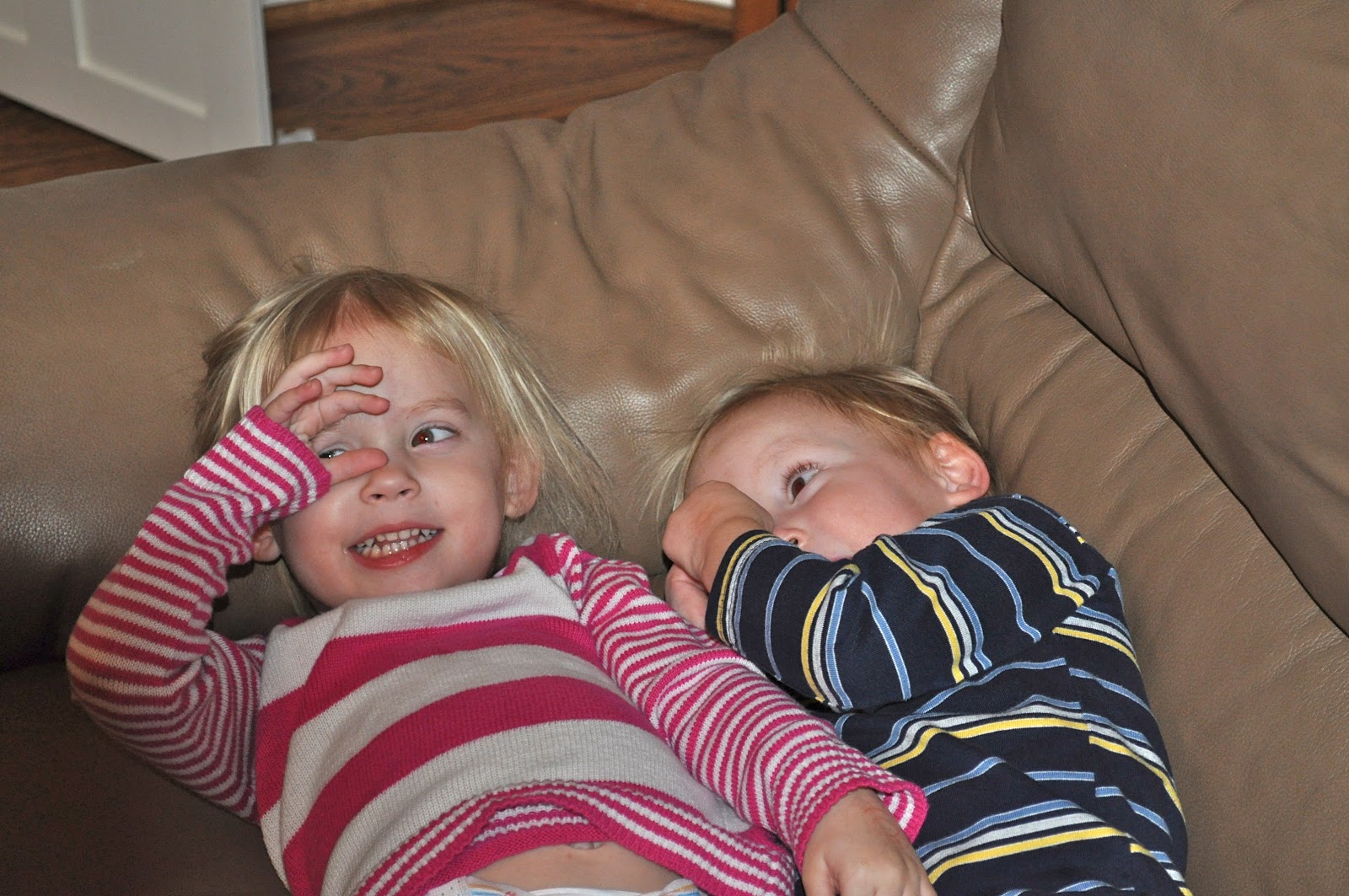 One day they became friends. Was it on this day, when I found them giggling together on the couch, that they discovered how much they liked each other? Was this when Twin Mode was born–the phrase M and I use to refer to Sam and Elisabeth when they’re in their own worlds? I’m not sure, but the complete compatibility of two of your children is such a fun blessing.