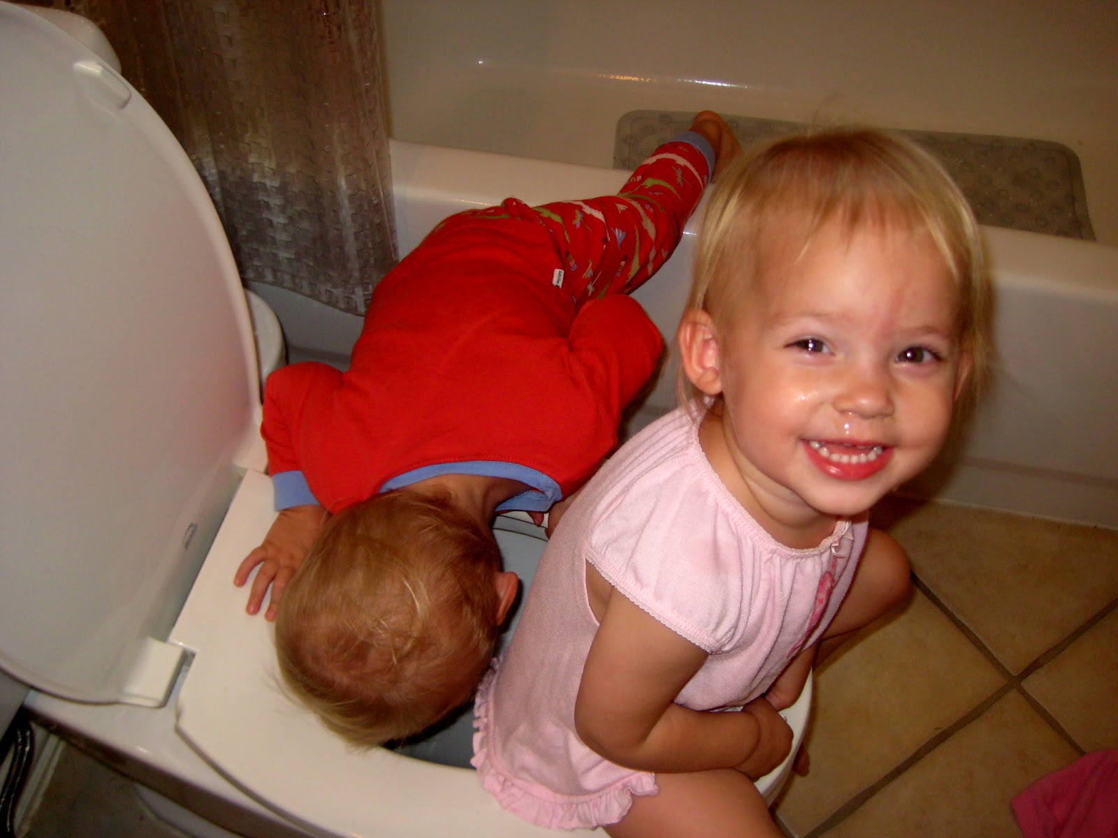 One day we decided Sam and Elisabeth needed to potty someplace other than the diapers that were a major item on our monthly budget. Oh, the silliness this introduced to our chaotic household. Me chasing them around to change their wet pants. Them shrieking and running away. And laughing.