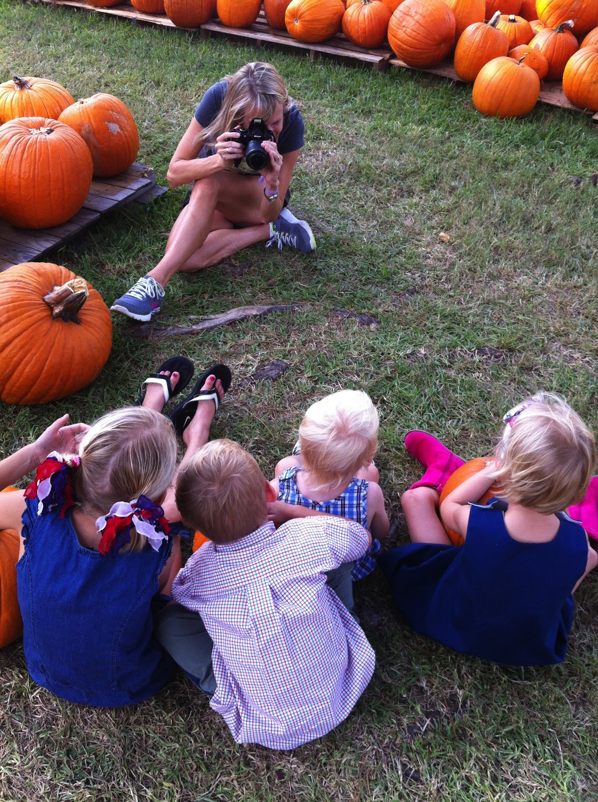 Every mom with little pumpkins of her own knows that pumpkin patches were meant for three things…pictures, pictures, and pictures. And, as a commitment to this, M snapped a picture of me…snapping pictures.