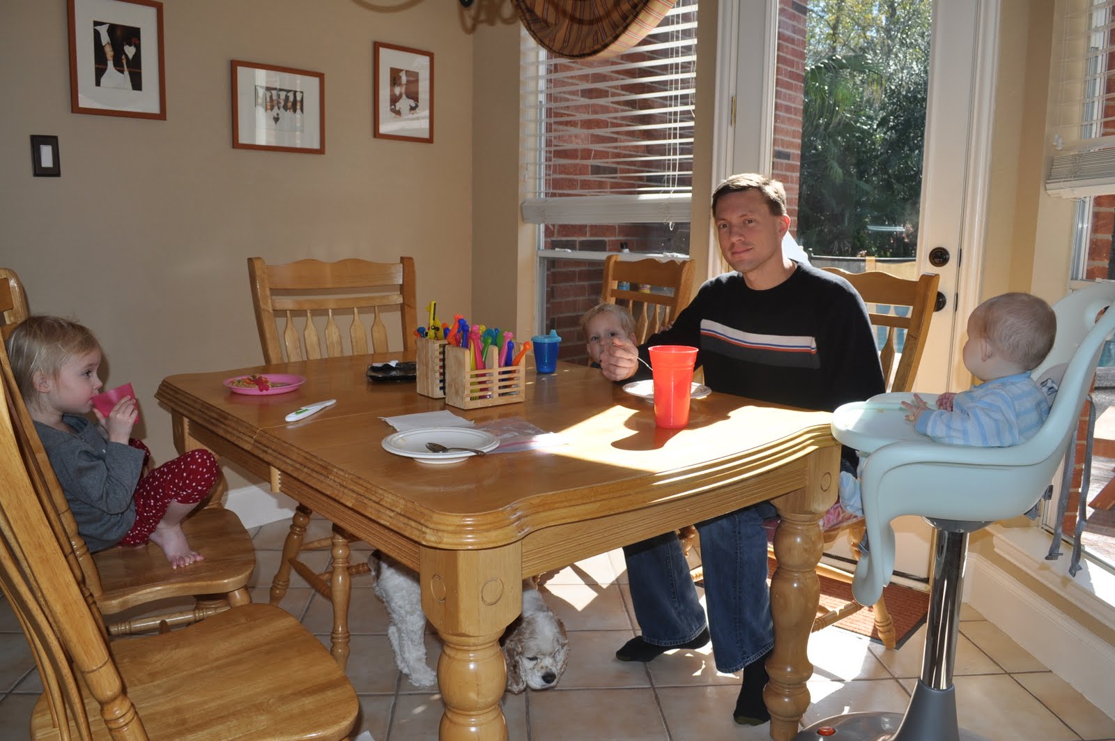 …each of our kids has learned to eat. (Based on Ellie’s position in this picture, learned with varying degrees of success.)
