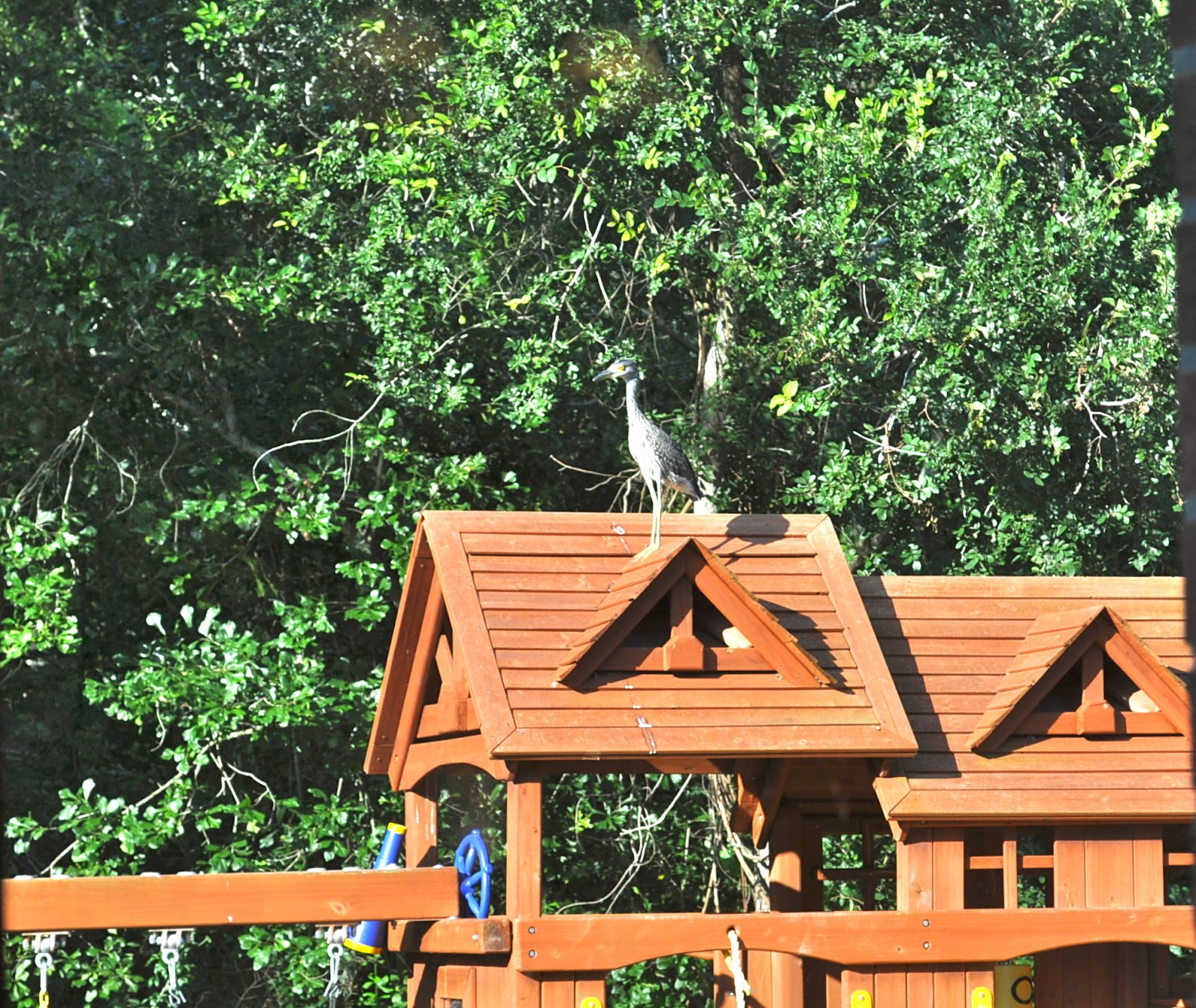 Last week a Yellow-crowned Night Heron stopped by to visit (and poop all over the playlet).