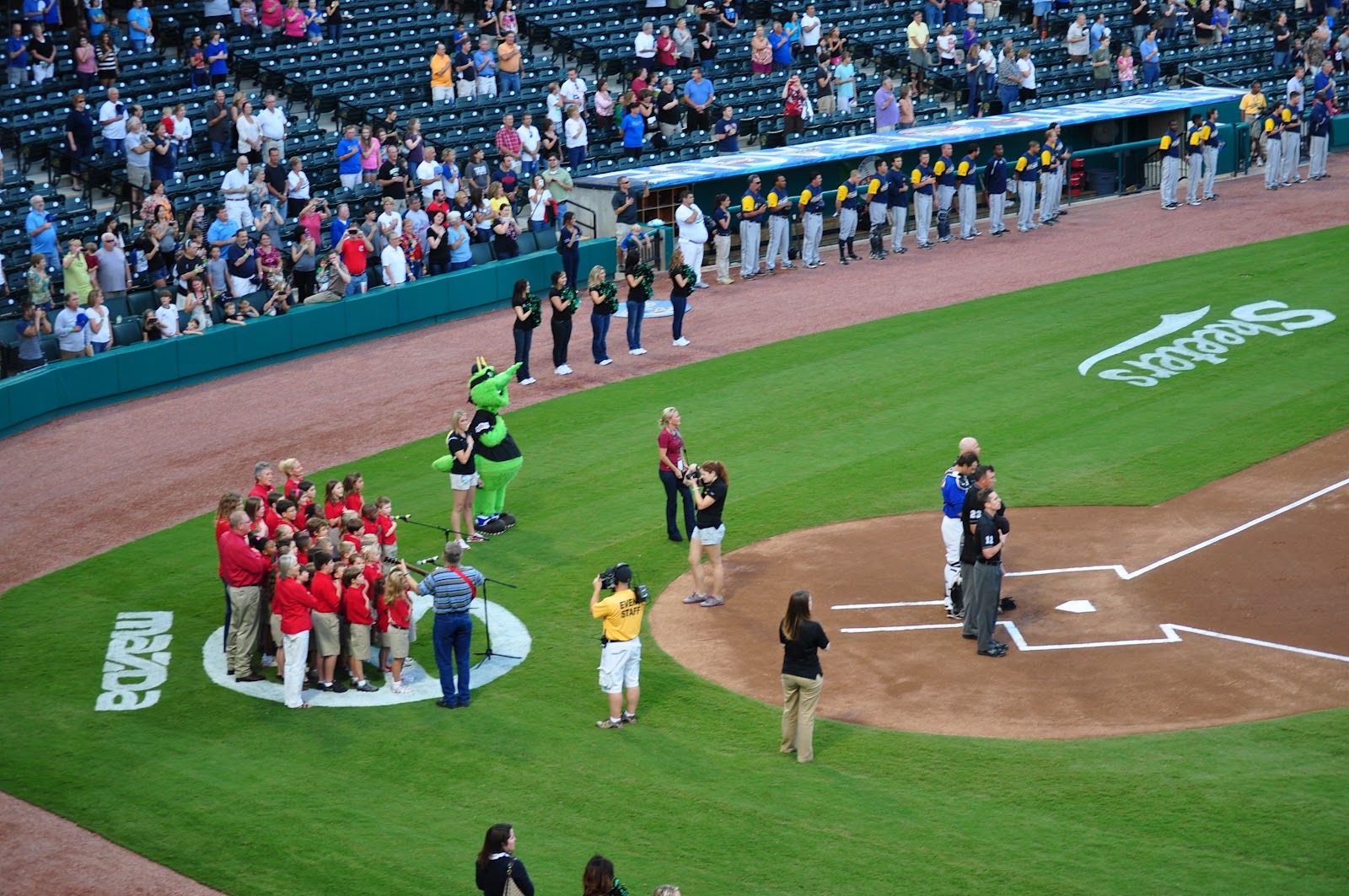 Friday Night our family cheered on the Sugarland Skeeters (a minor-league baseball team that plays in another suburb close to our house). Mainly we went because the twins’ school was singing the National Anthem and the kids had been looking forward to that for a month straight. But we also went because M has been wanting to go to a game, even before baseball legend Roger Clemens started pitching for them.