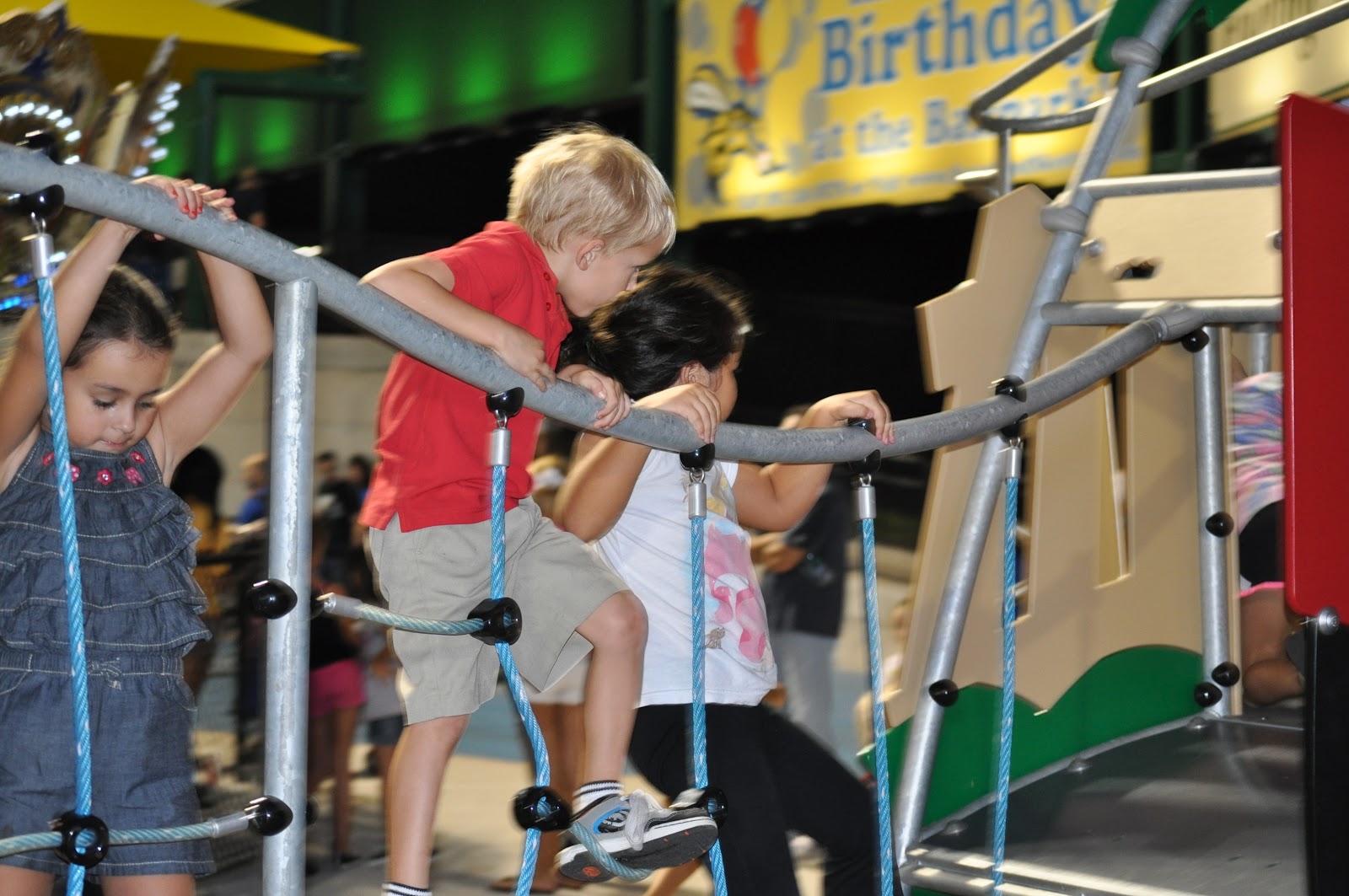 5. Summary: So, the Skeeters had everything we were looking for in our baseball game experience: guys selling cotton candy in the stands, low stress and crowds, giant mosquitos, the National Anthem (!), Deep in the Heart of Texas after the seventh inning, and a Kiss Cam. BUT as an added bonus, there was a playground, carousel, and swimming pool behind the outfield. This was great for our family because the kids had absolutely zero interest in the game.