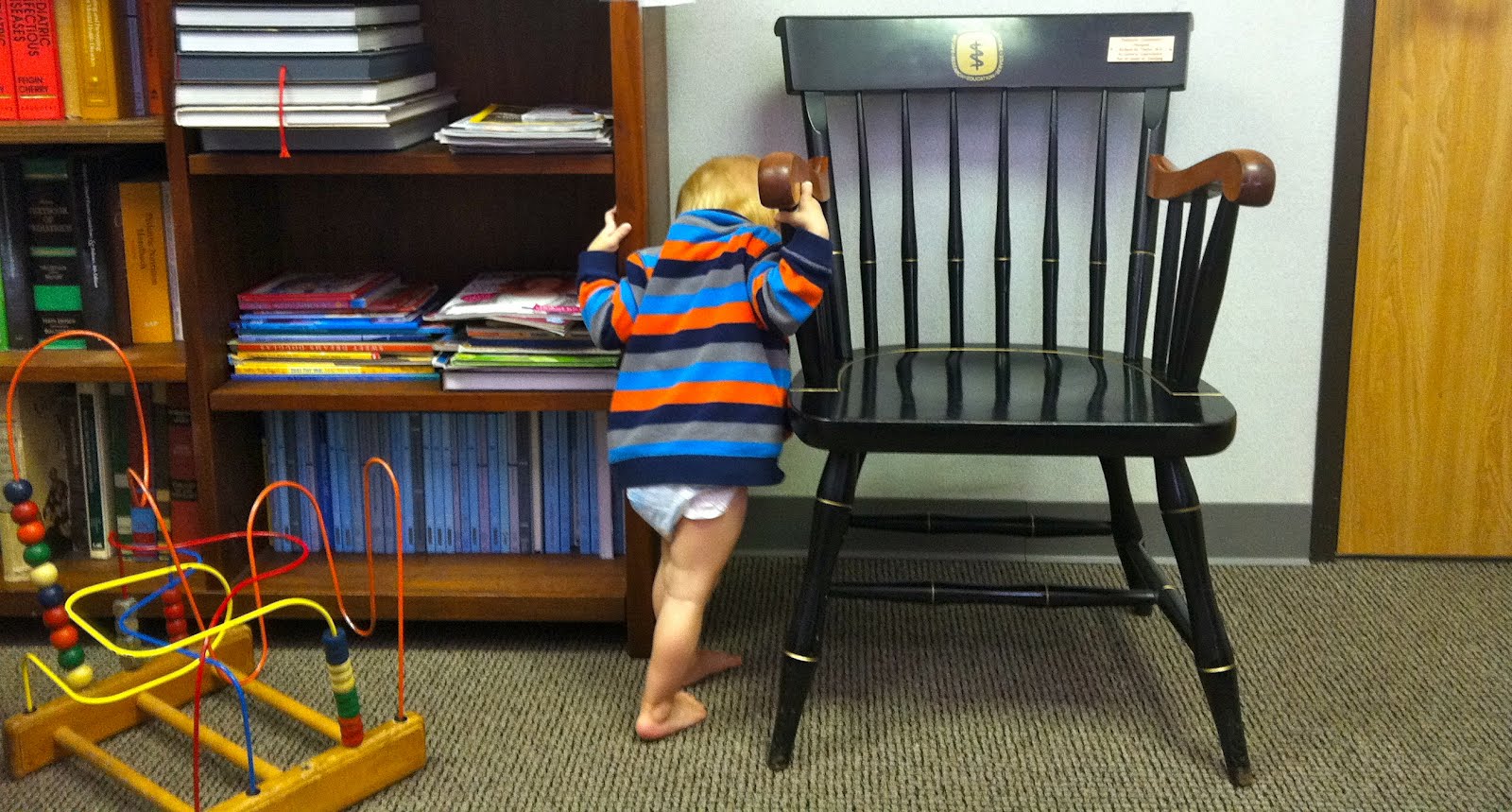 C) Looking for some real toys. C’mon, doctor. He’s a FOURTH CHILD. He mastered your IKEA bead maze at three months. Got a DS or something that a toddler can really PLAY with?
