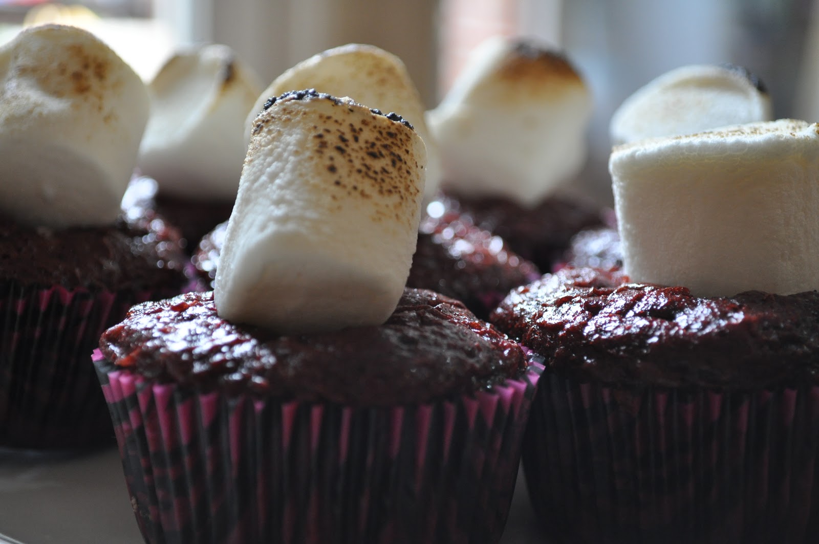 And then I brought my new gadgets home, and I made these Stuffed Red Velvet Cupcakes so I could fill them up with meringue (with less sugar) and stick a toasted marshmallow on top of each one.